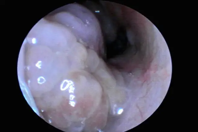 粘液性息肉:最常见,外观类似剥皮葡萄或鲜荔枝肉,表面光滑半透明、呈粉红色,带有细蒂,触感柔软可活动,多生长在中鼻道内;