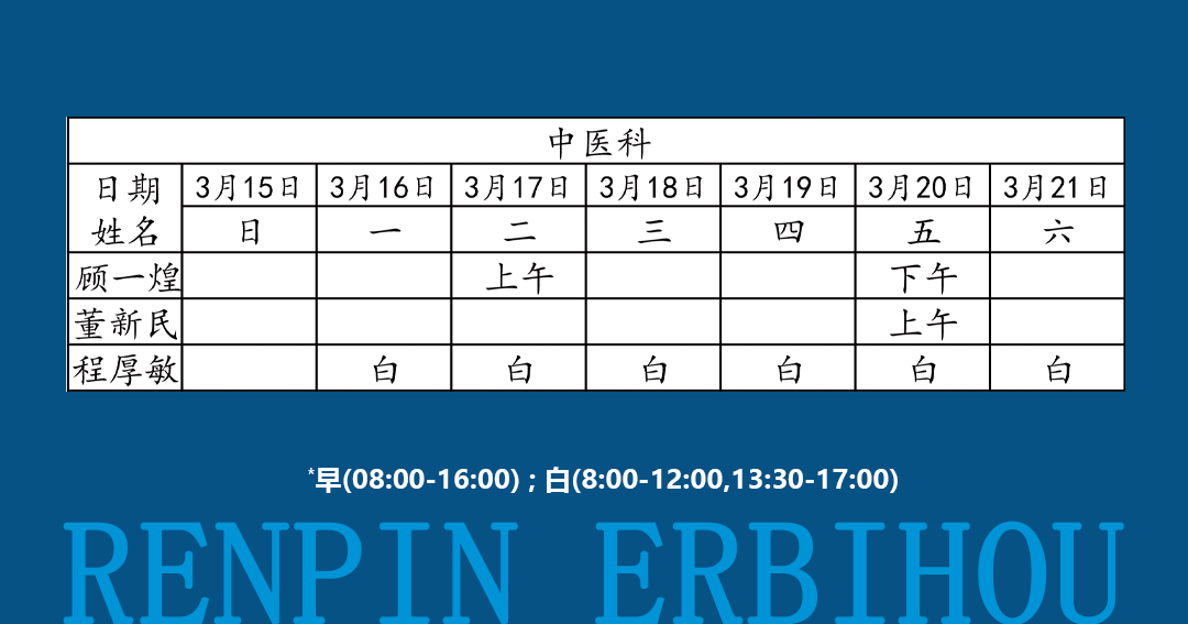 如有临时调整,以当日出诊信息为准!